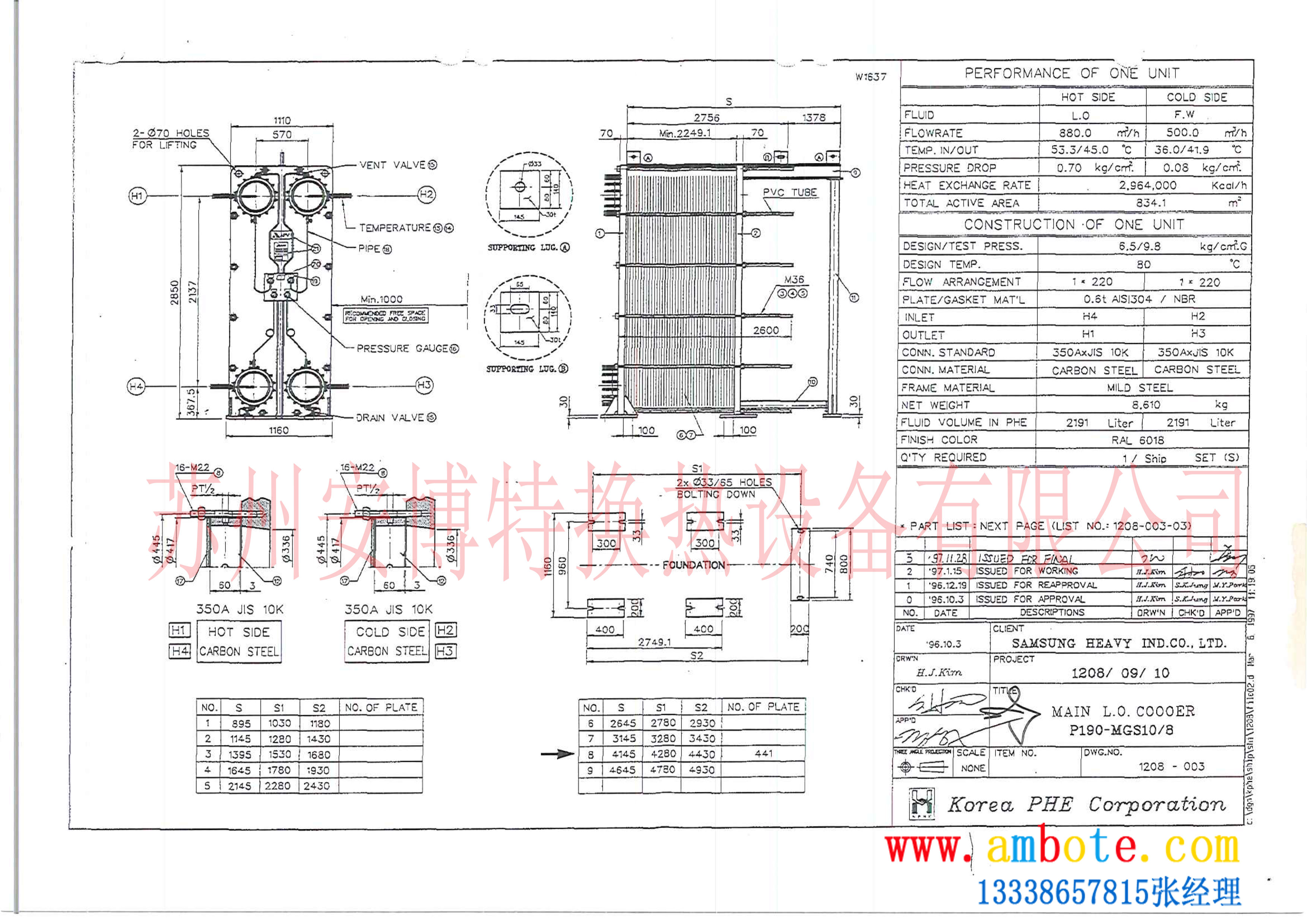 3、 APV/安培威190 MGS板式换热器图纸